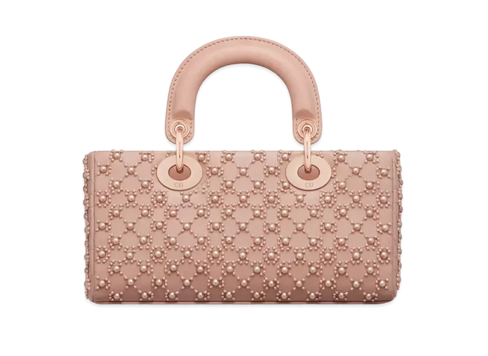 Dior Small Lady D-Joy Bag Cannage Calfskin Embroidered Resin Pearls "Rose Des Vents"