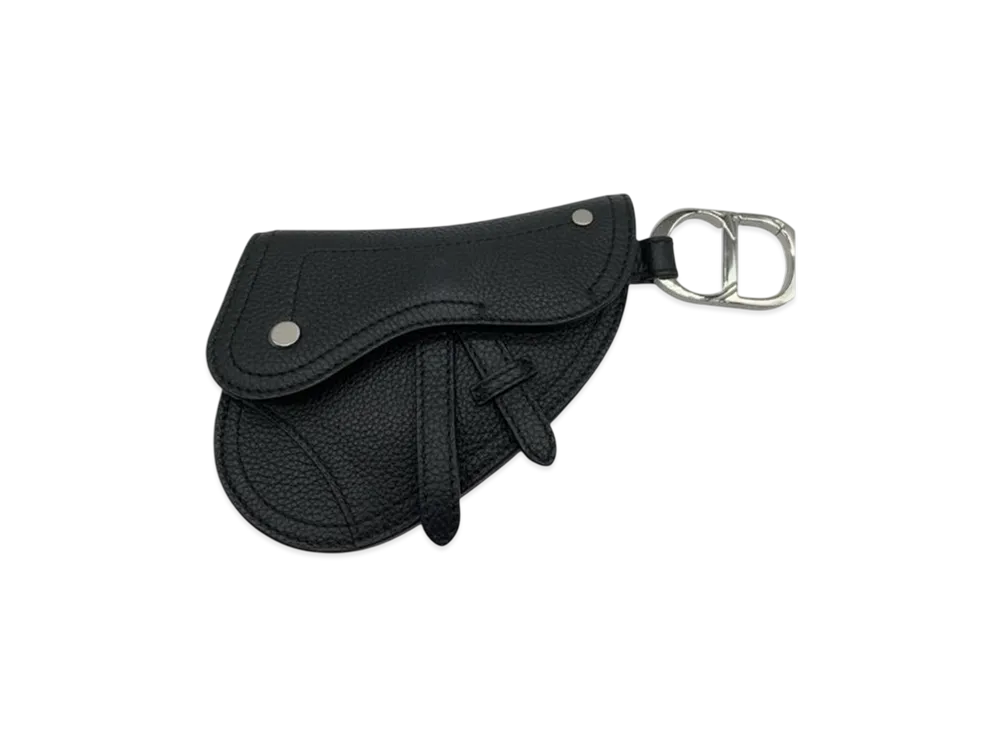 Dior Saddle Bag Grained Touch Calfskin Coin Purse Key Pouch "Black"
