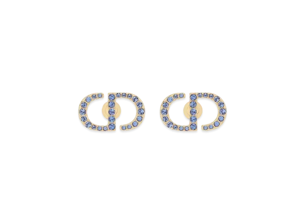 Dior Petit CD Stud Earrings Metal and Crystals "Gold/Blue"