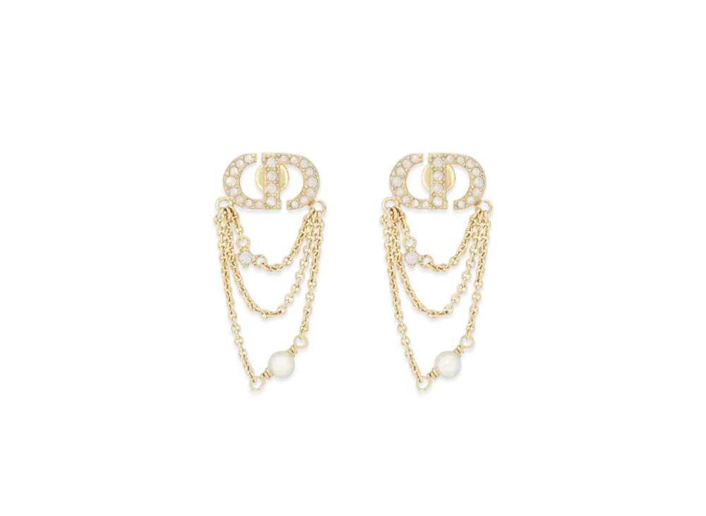 Dior Petit CD Earrings Metal with Resin Pearls and Crystals "Gold/White/Silver"