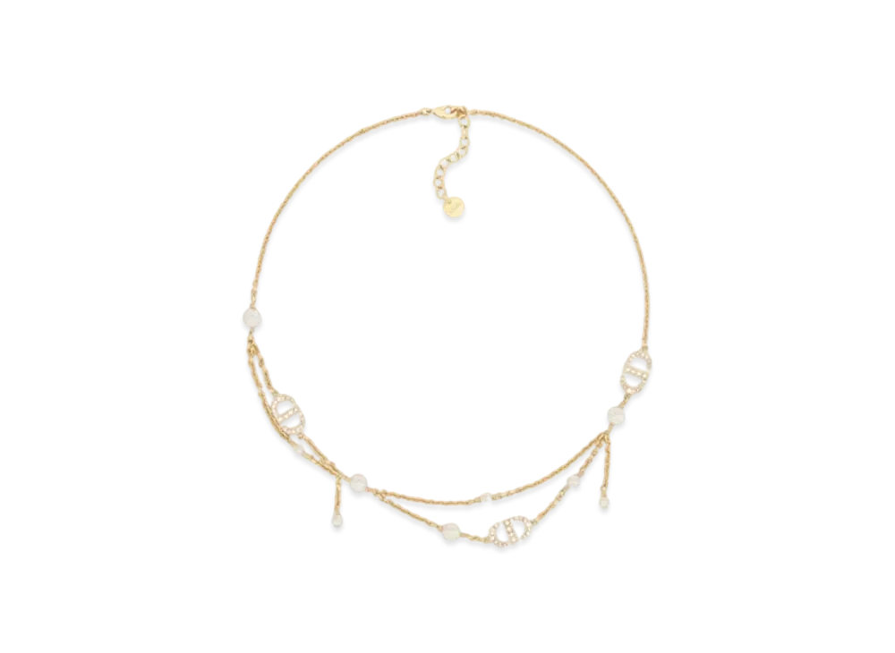 Dior Petit CD Necklace Metal with Resin Pearls and Crystals "Gold/White/Silver"