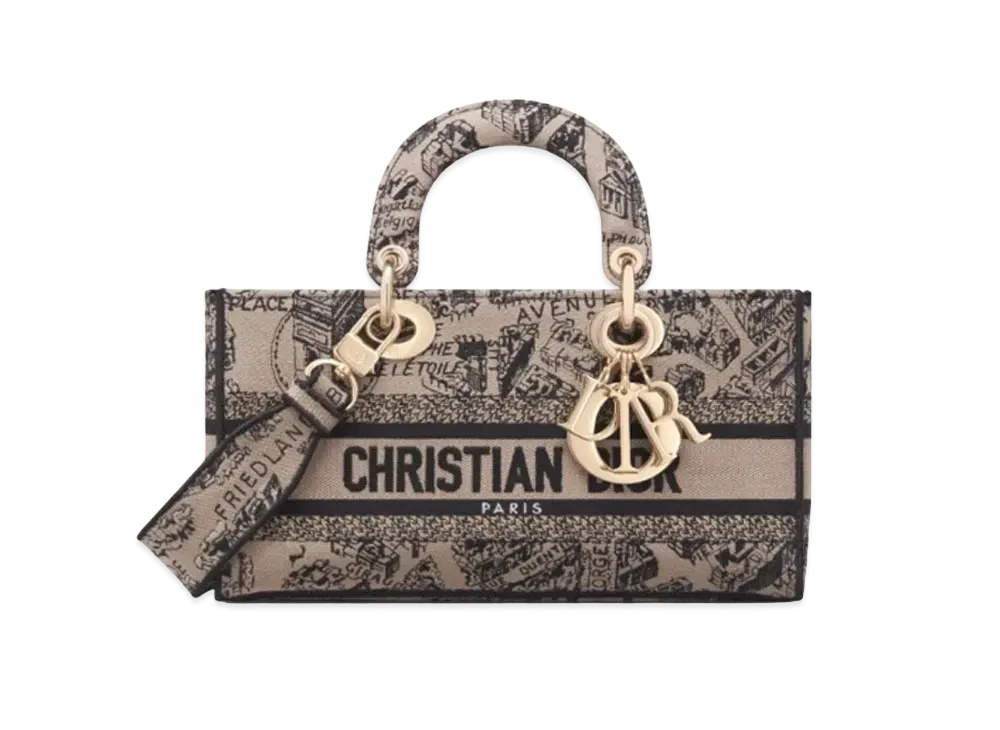 Dior Medium Lady D-Joy Bag Plan de Paris Embroidery "Beige/Black"