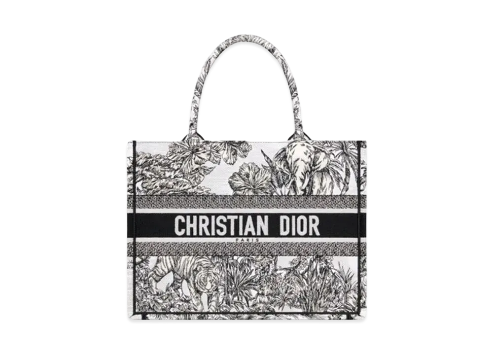 Dior Medium Book Tote Toile de Jouy Voyage Embroidery "White/Black"