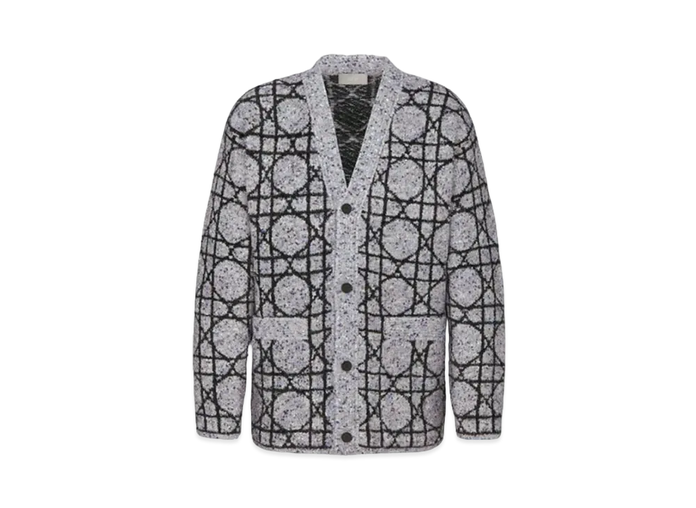 Dior Cannage Cardigan Cashmere Jacquard and Cotton Blend "Gray/Black"