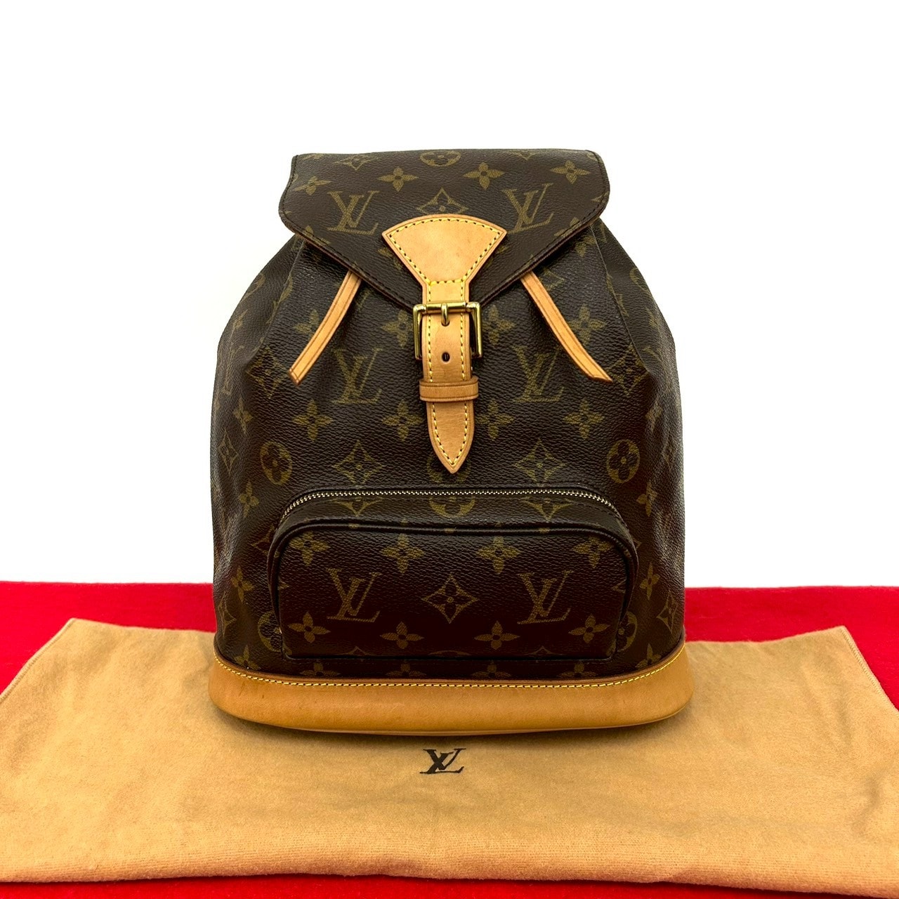 LOUIS VUITTON ルイヴィトン モンスリ MM モノグラム レザー PVC リュックサック ブラウン