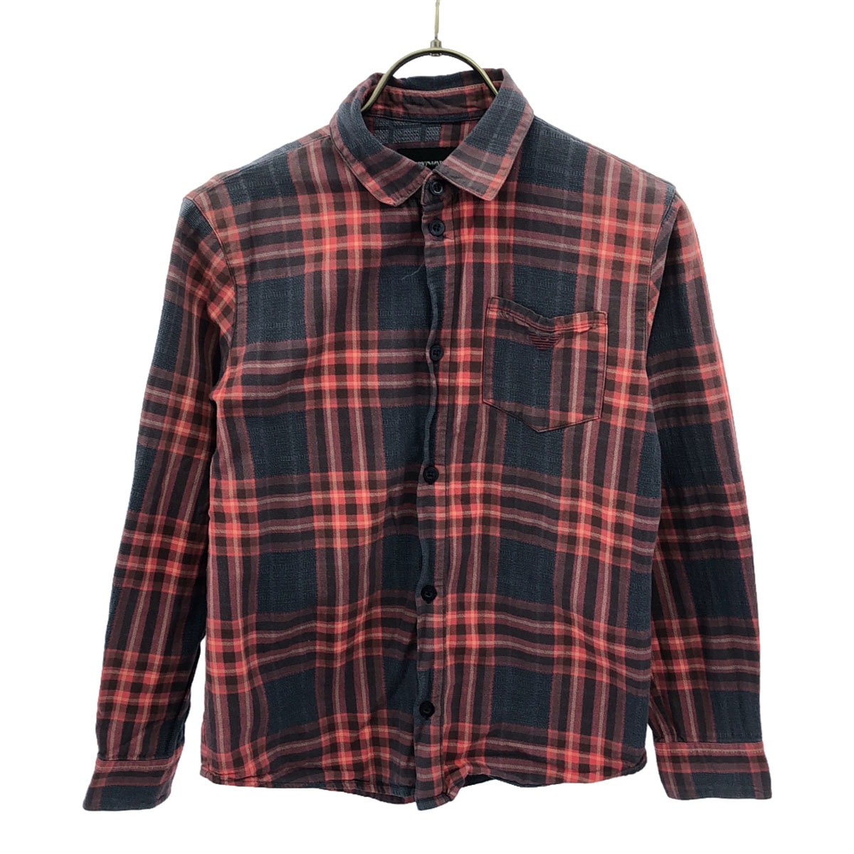 Emporio Armani エンポリオアルマーニ チェック柄 ロゴ刺繍 長袖 シャツ 10A レッド系
