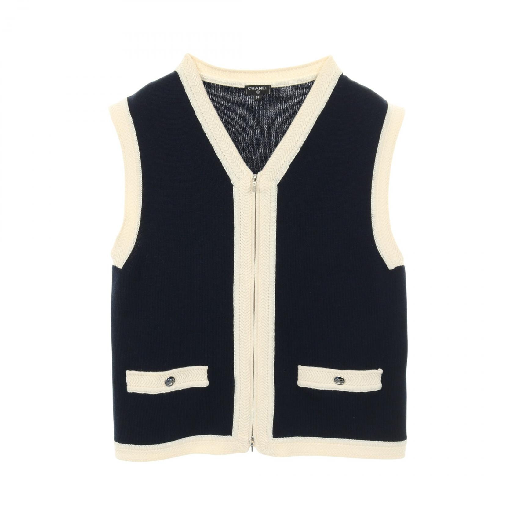 シャネル CHANEL ココマーク ニット ベスト 衣料品 トップス カシミヤ レディース ネイビー系 / ホワイト系 【中古】