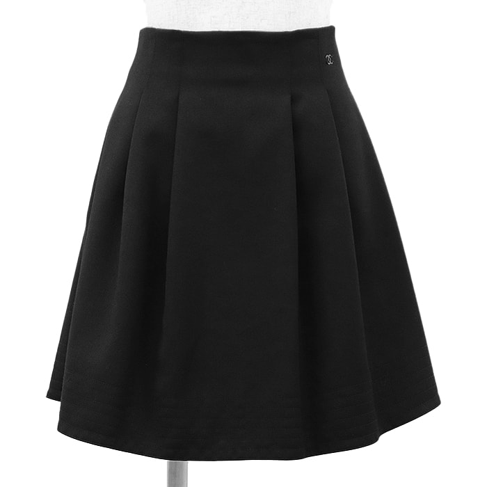 美品 シャネル プリーツ ウール スカート レディース ブラック 36 CHANEL