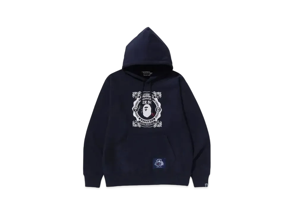 A BATHING APE Japanese Motif Relaxed Fit Pullover Hoodie "Navy"