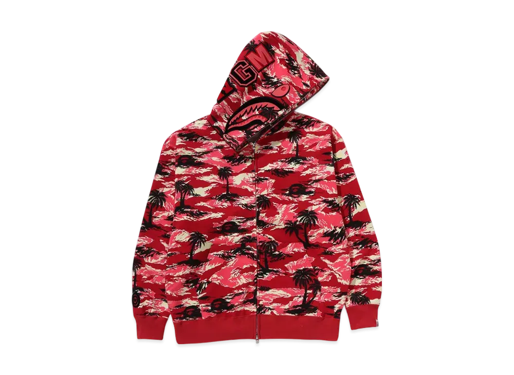 A BATHING APE Palm Tree Camo Relaxed Fit Shark Full Zip Hoodie "Red"