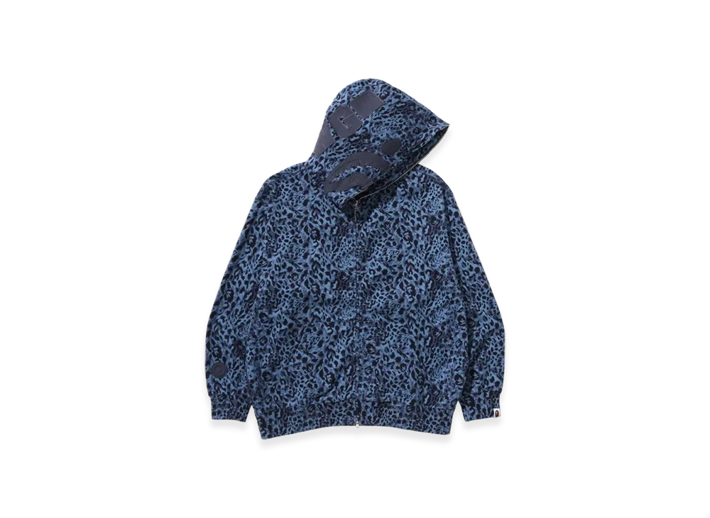 A BATHING APE Wild Leopard Pattern Shark Relaxed Fit Full Zip Hoodie "Navy"