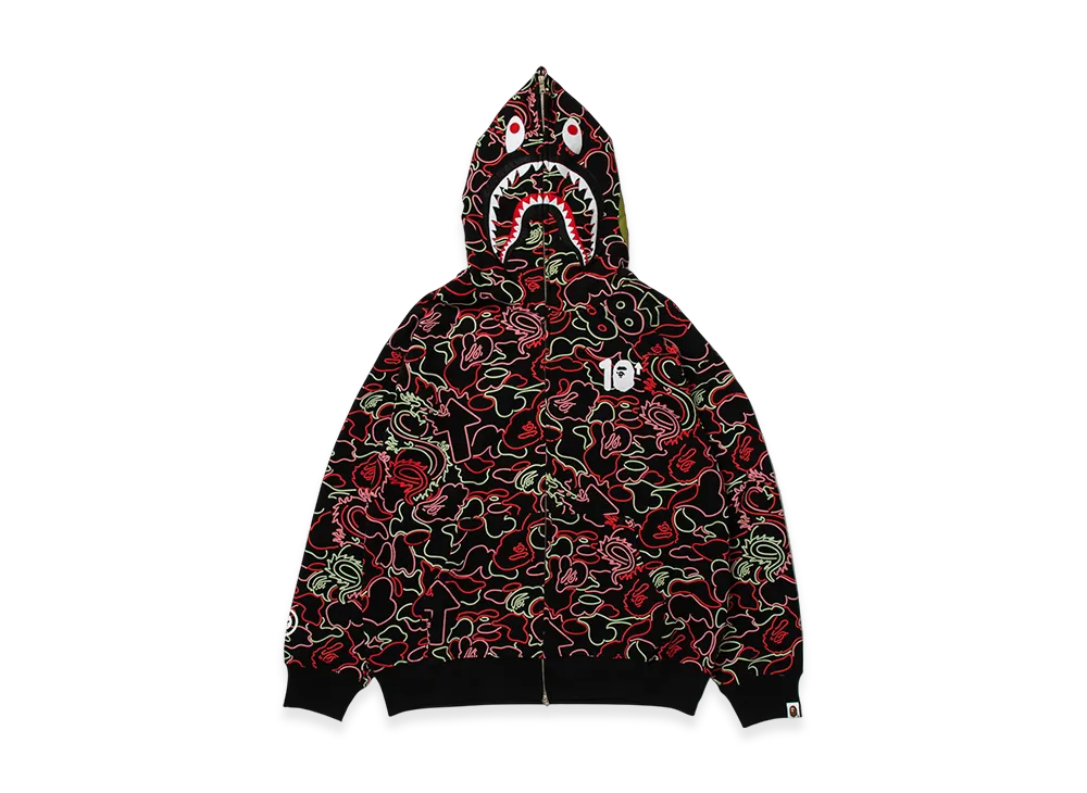 A BATHING APE x 88rising Glow In The Dark Camo Shark Full Zip Hoodie "Red"