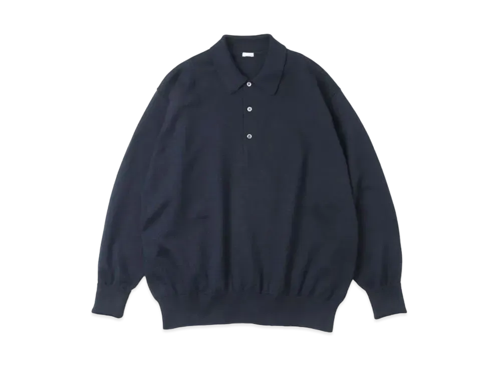 A.PRESSE Cotton Knit L/S Polo Shirts "Navy"