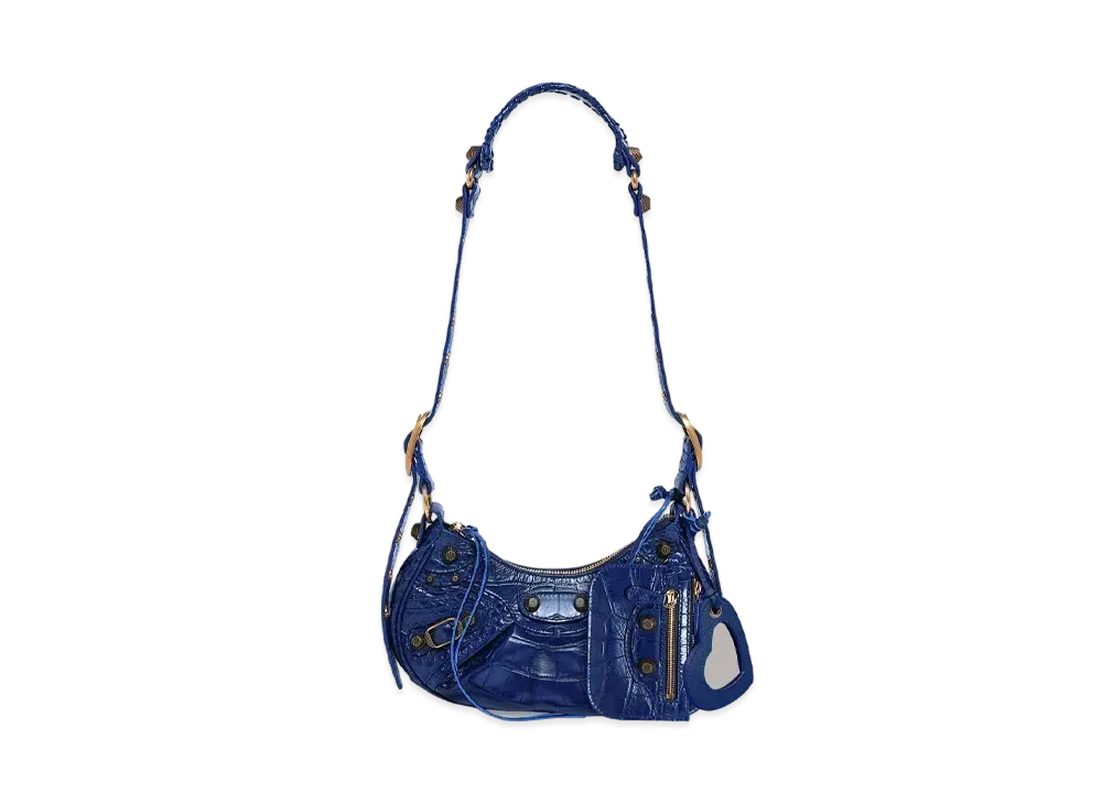 BALENCIAGA Le Cagole XS Shoulder Bag In Extra Supple Crocodile Embossed Calfskin in Indigo "Blue"
