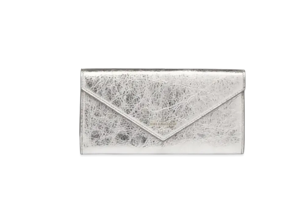 BALENCIAGA Paper Metallic Gloss Paper Full-Zip Wallet "Gris"