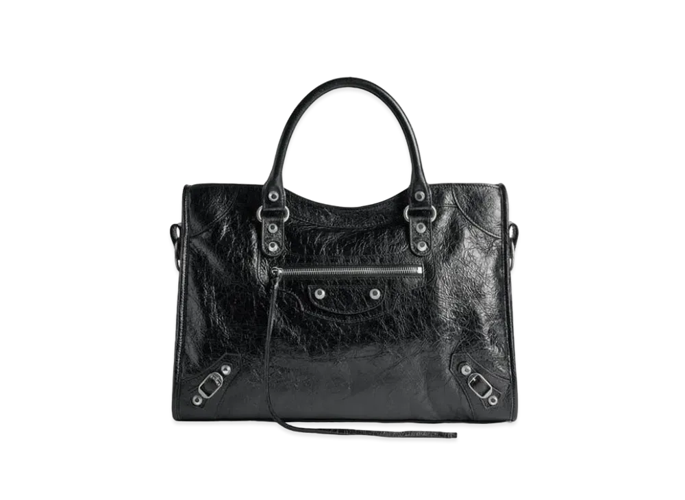 BALENCIAGA Le City Medium Bag Arena Lambskin, Shiny Silver Hardware "Black"