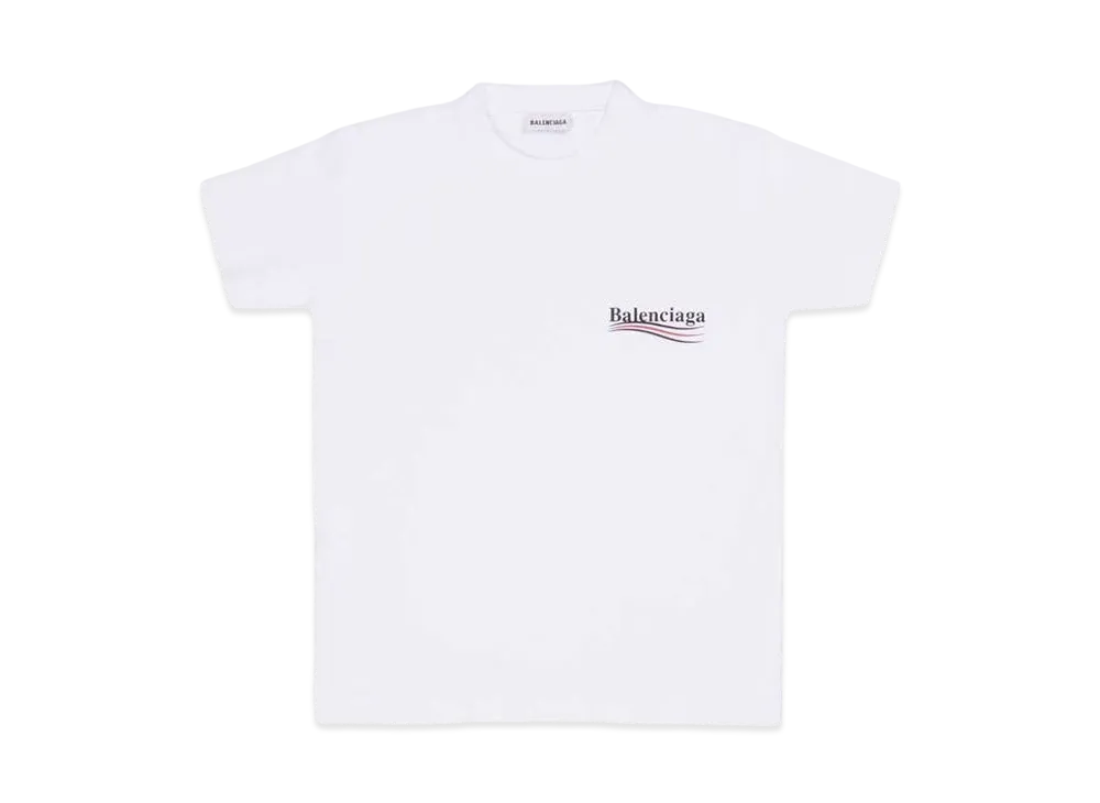 BALENCIAGA MENS Political Campaign T-shirt Large Fit "White/Black/Blue"