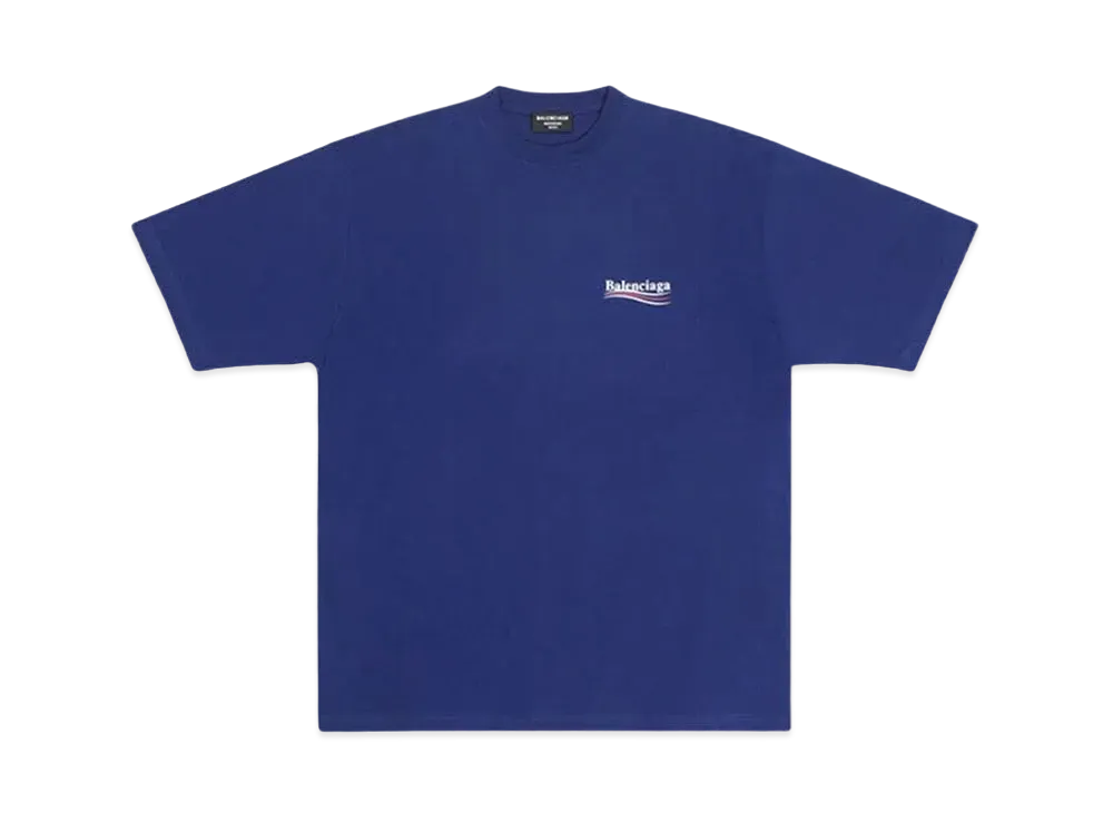 BALENCIAGA MENS Political Campaign T-shirt Large Fit "Pacific Blue"