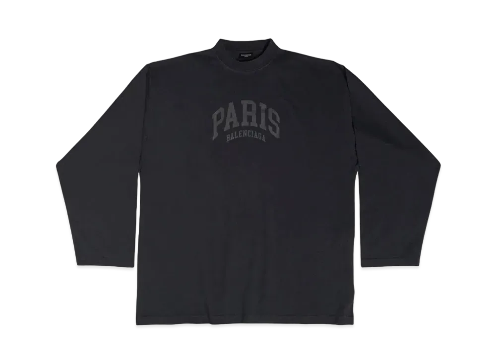 BALENCIAGA MENS Cities Paris Long Sleeve T-shirt Oversized "Black"