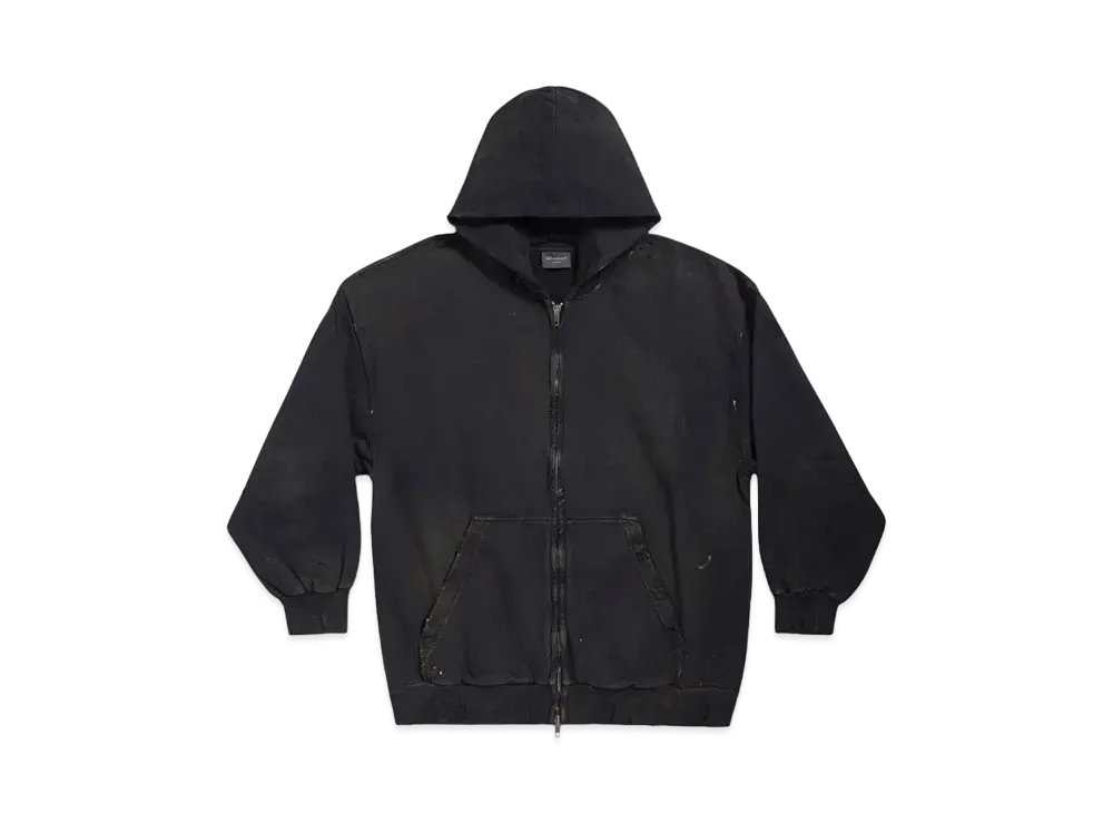 BALENCIAGA MENS Paris Zip Up Hoodie Small Fit "Black"