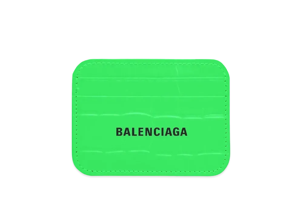 BALENCIAGA Cash Card Holder In Shiny Crocodile Embossed Calfskin "Light Green"