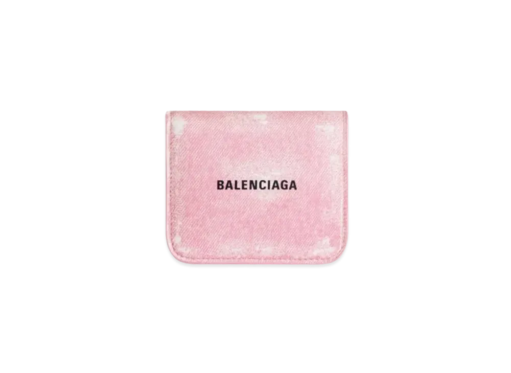 BALENCIAGA Cash Flap Coin Card Holder Denim Print "Pink"