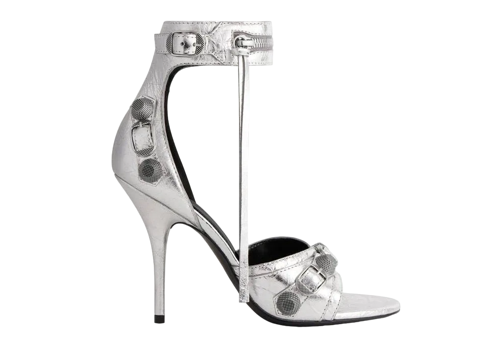 BALENCIAGA Women's Cagole 110mm Sandal Metallized "Silver"