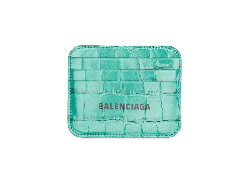 BALENCIAGA Cash Card Holder With Partition Crocodile Type Push "Green"