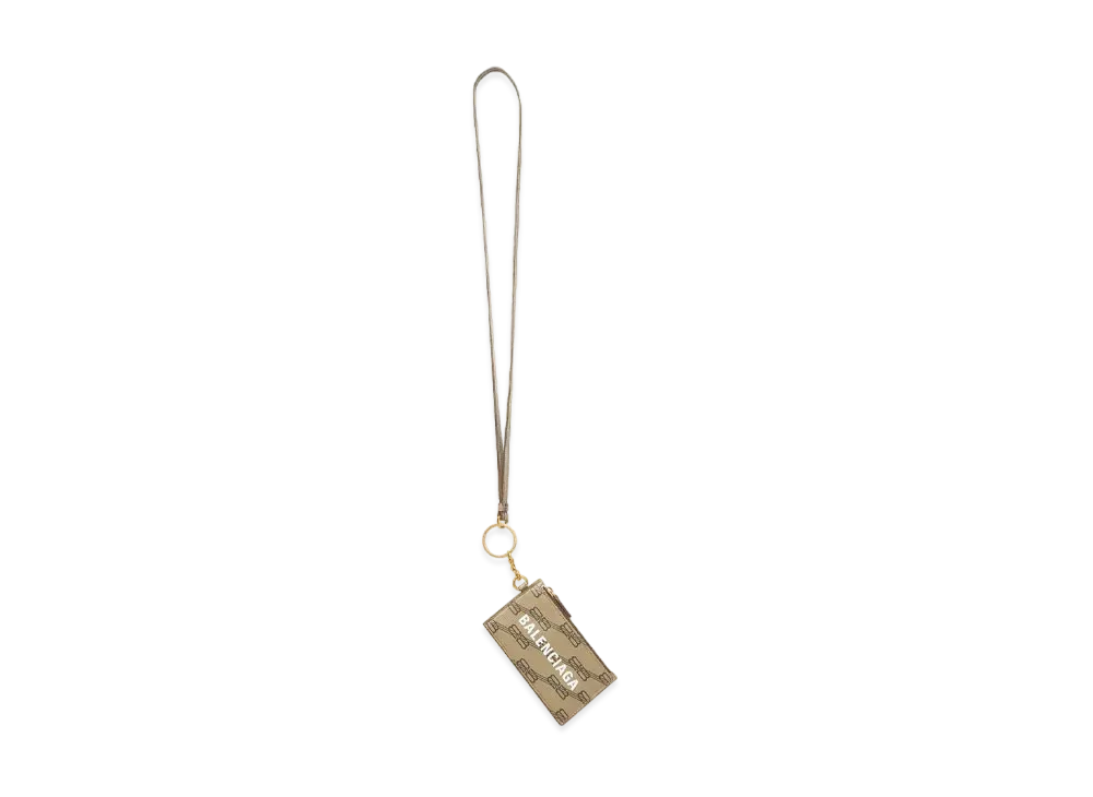 BALENCIAGA Signature Card Case On Keyring BB Monogram Coated Canvas "Beige"