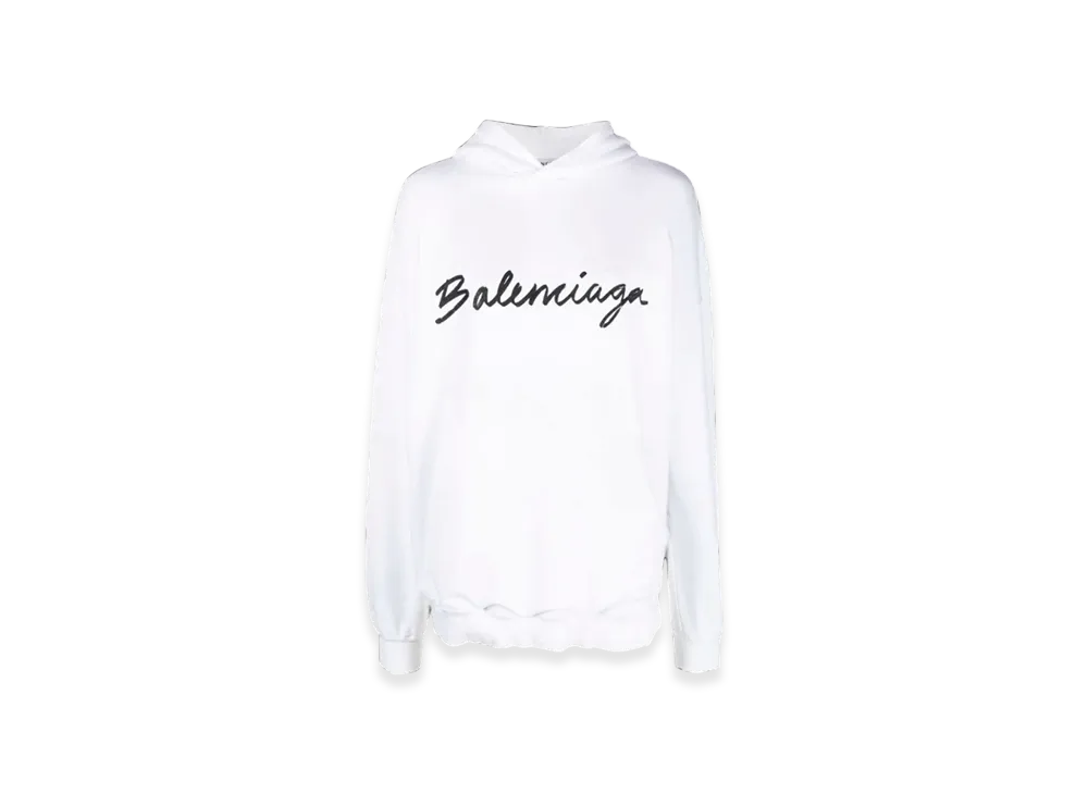 BALENCIAGA Script Logo Oversized Popover Hoodie "White Black"