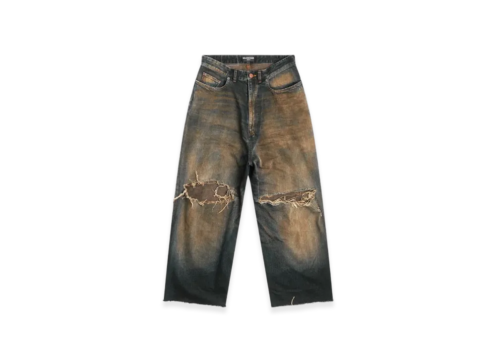 BALENCIAGA Destroyed Super Large Baggy Trousers "Black"