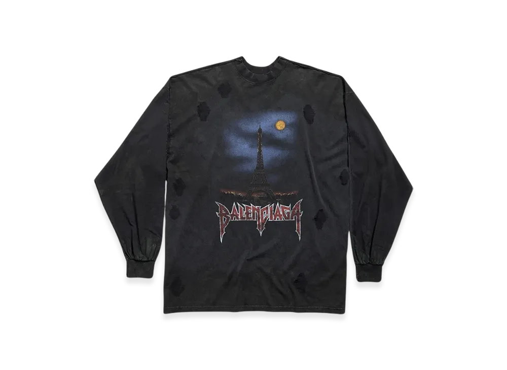 BALENCIAGA Paris Moon Double Front Oversized Long Sleeve T-Shirt "Black"