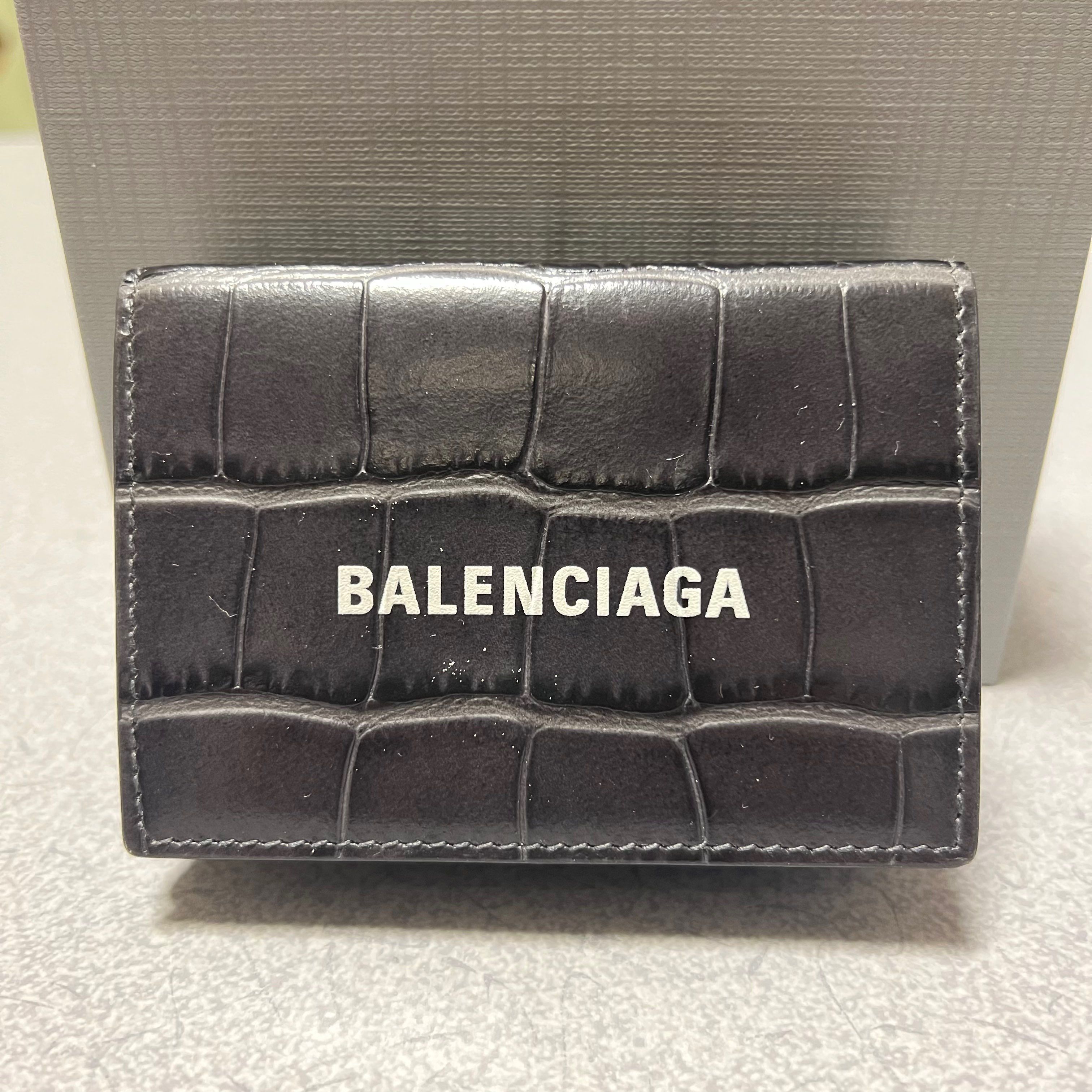 BALENCIAGA Cash Mini Wallet Matt Embossed Crocodile Calfskin "Black"
