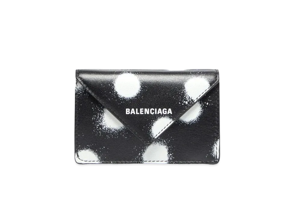 BALENCIAGA Papier Mini Wallet In Sprayed Polka Dots Printed Smooth Calfskin "Black"
