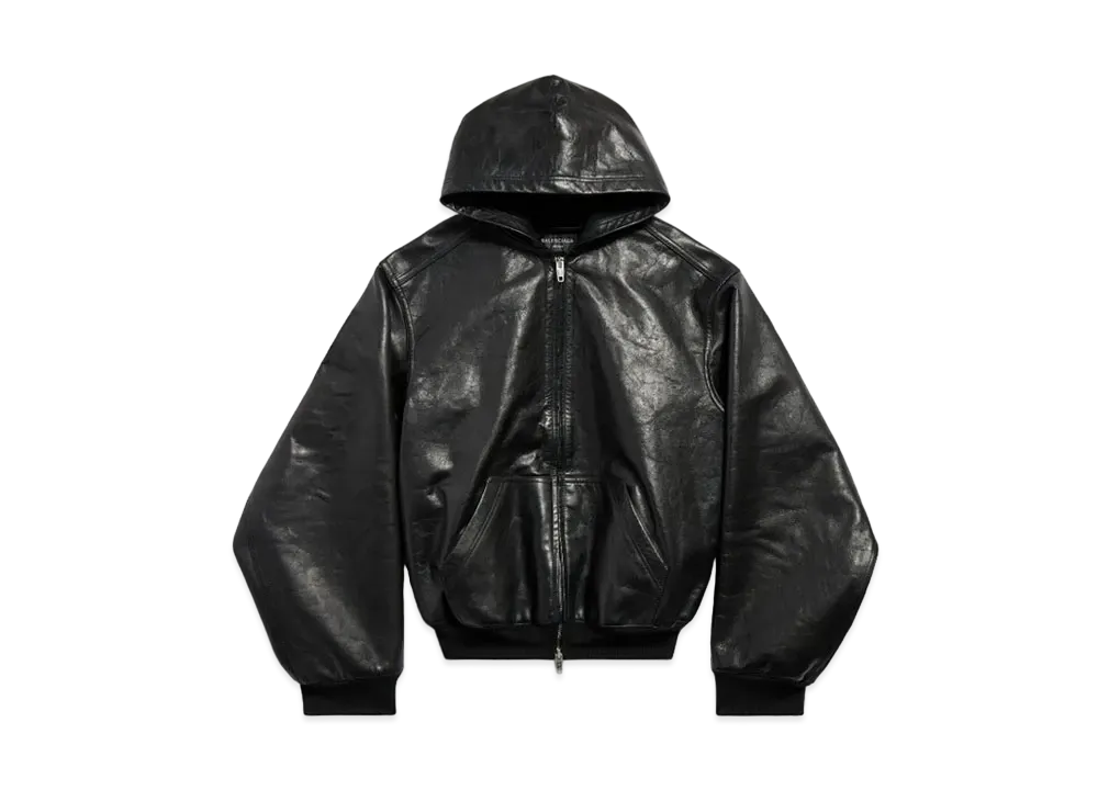 BALENCIAGA Lined Zip-Up Hoodie Large Fit in Shiny Cowskin "Black"