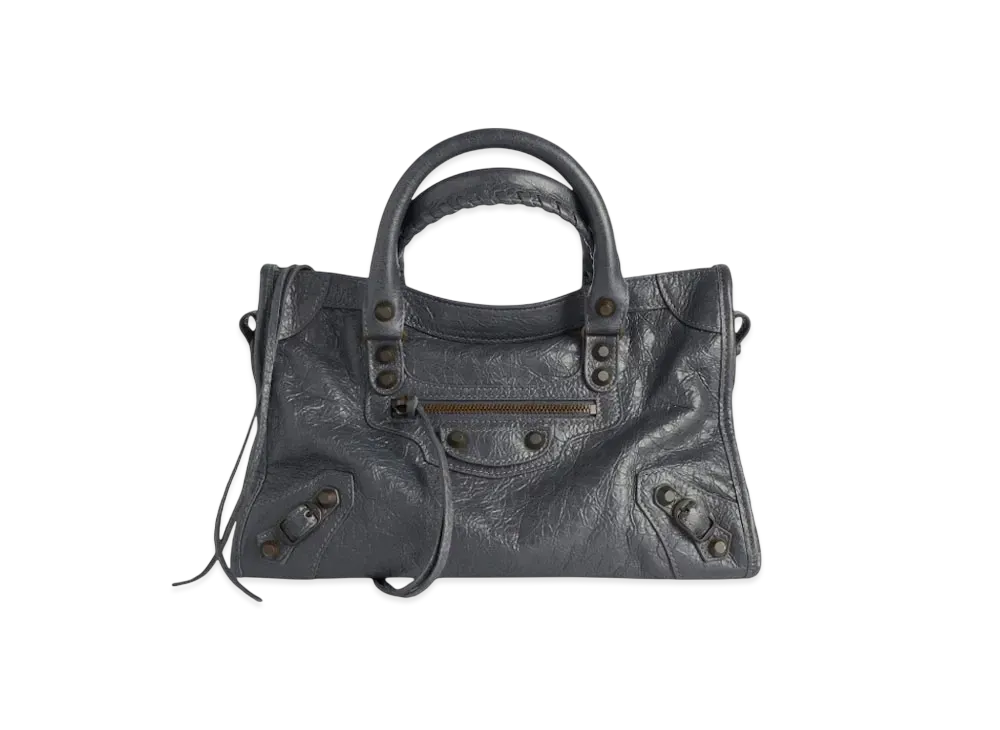 BALENCIAGA The Papier Leather Handbag Blue Grey"