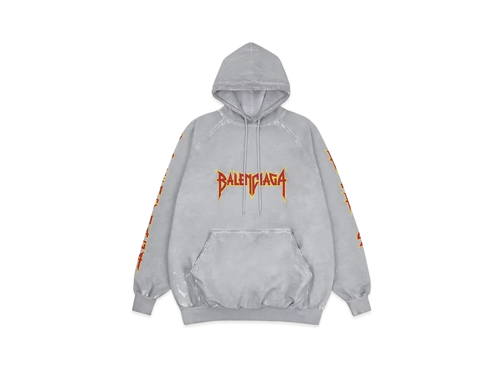 BALENCIAGA MENS Metal Oversized Hoodie "Light Grey"