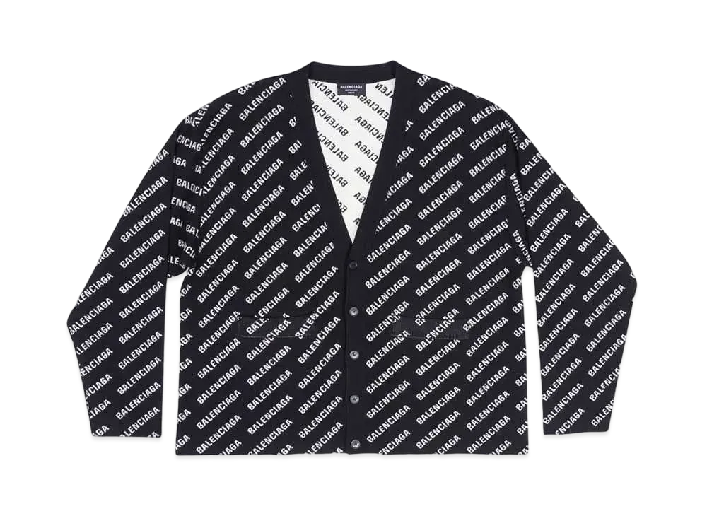 BALENCIAGA MENS Mini Allover Logo Cardigan "Black"