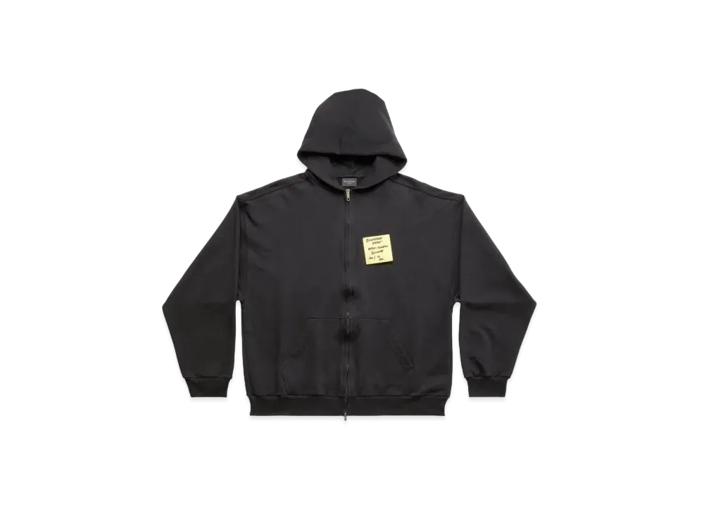 BALENCIAGA Sticky Note Zip Up Hoodie Medium Fit "Black"
