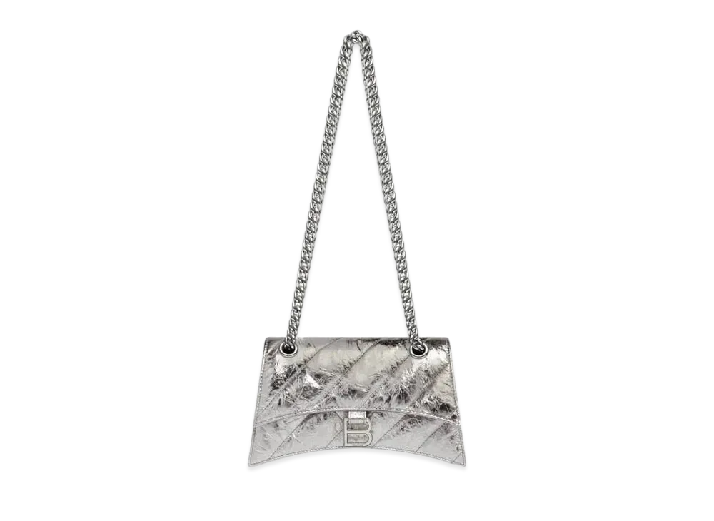BALENCIAGA Crush XS Chain Bag Metallic Quilted "Silver"