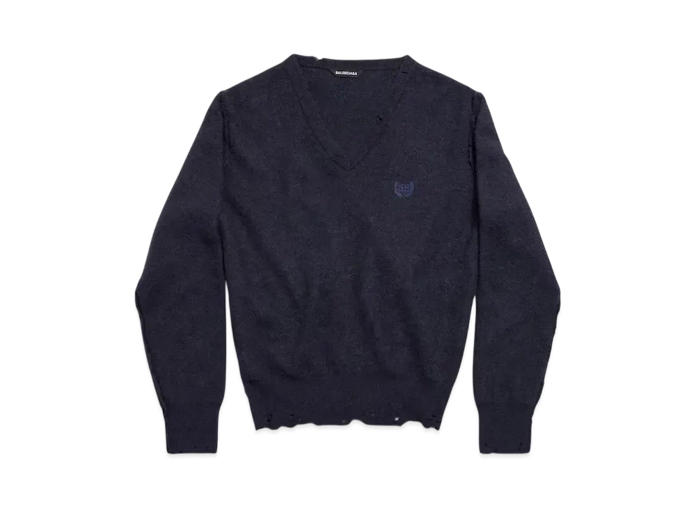 BALENCIAGA Women's Laurel Classic Inside-Out V-Neck Sweater "Navy"