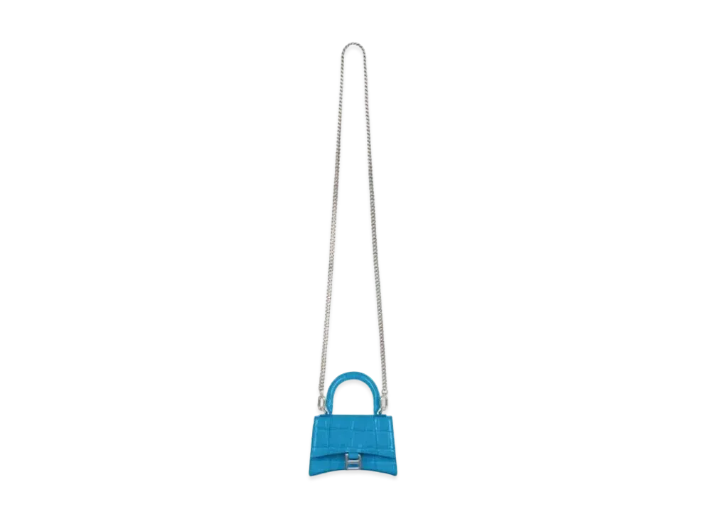 BALENCIAGA Women's Hourglass Mini Top Handle Bag With Chain "Blue"
