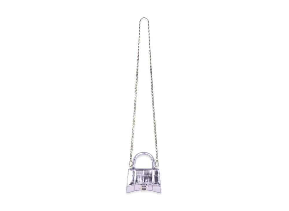 BALENCIAGA Women's Hourglass Mini Top Handle Bag With Chain "Purple"