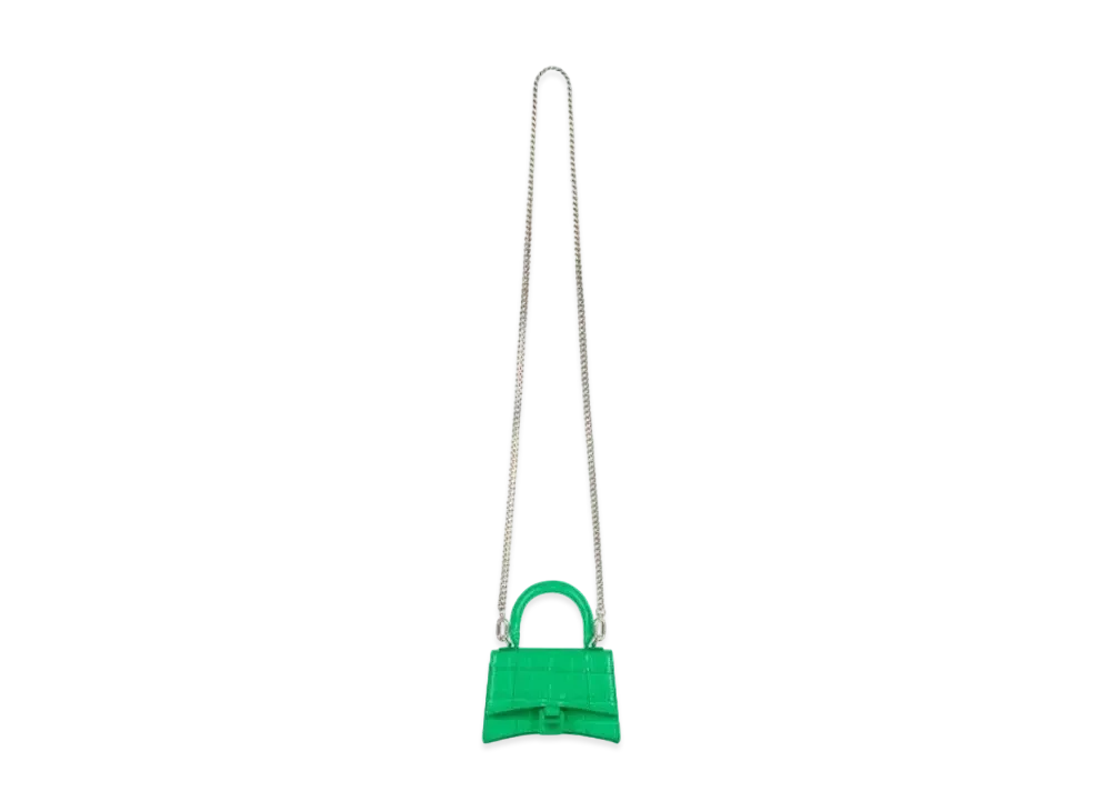 BALENCIAGA Women's Hourglass Mini Top Handle Bag With Chain "Green"