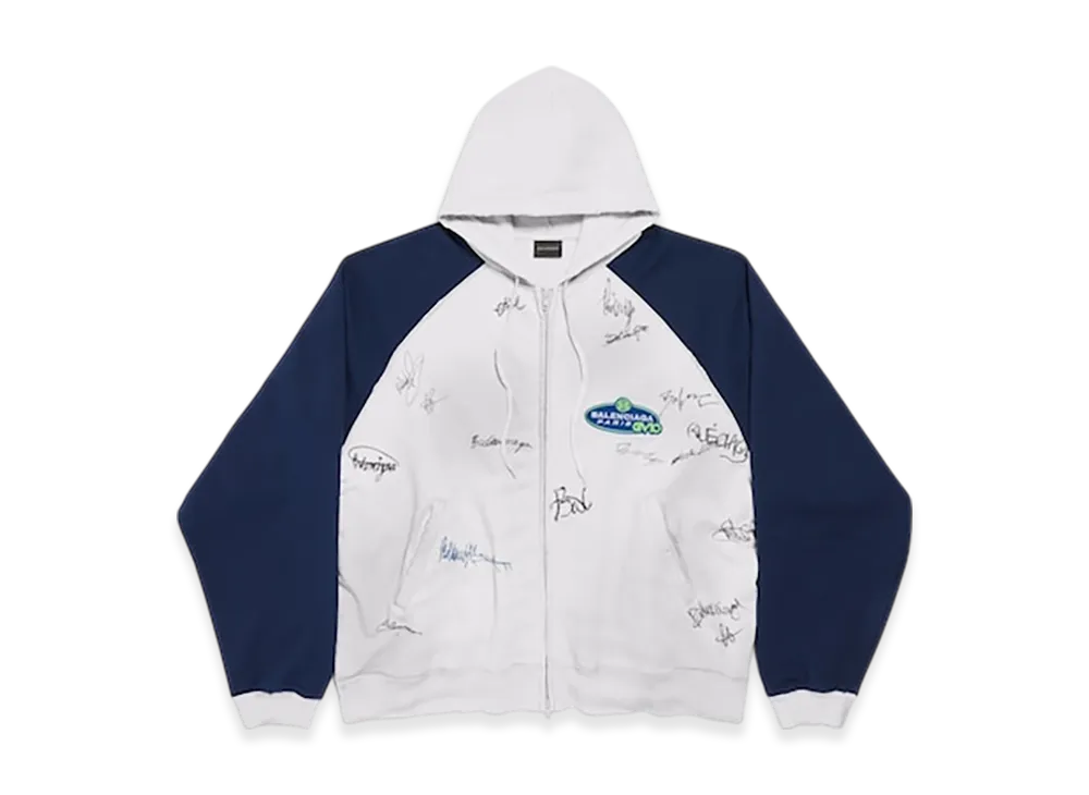 BALENCIAGA Banana Raglan Oversize Zip-up Hoodie "Dirty Effect White/Blue"