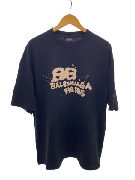 【美品】 バレンシアガ 2022SS スウェット ダメージ加工 メタルバンド風 ロゴプリント パーカー メンズ ブラック 5 BALENCIAGA