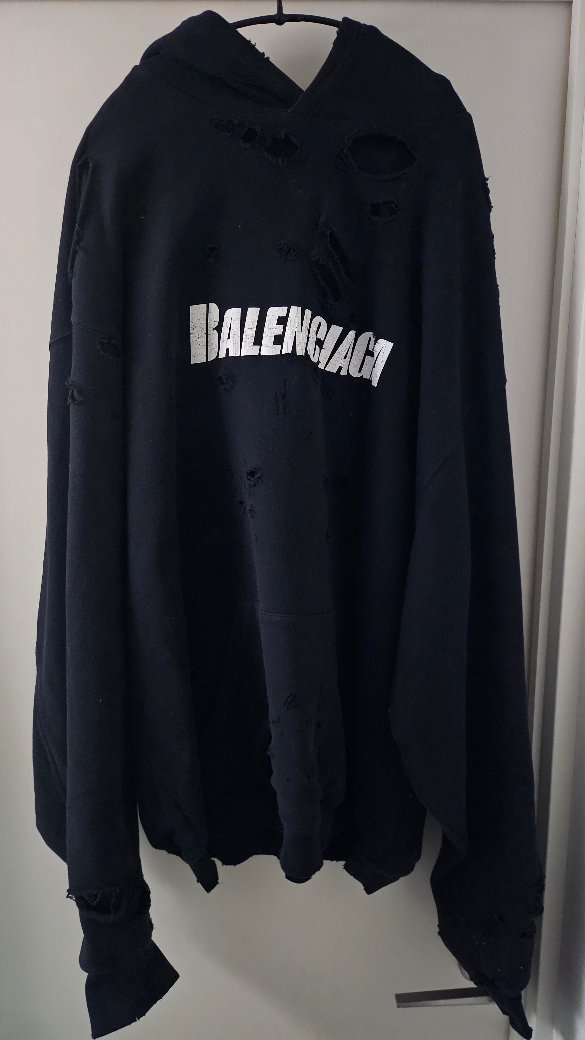 BALENCIAGA MENS Caps Destroyed Hoodie "Black/White"