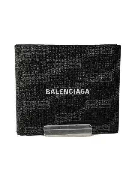 BALENCIAGA Signature Square Folded Coin Wallet BB Monogram Coated Canvas "Black/Grey"