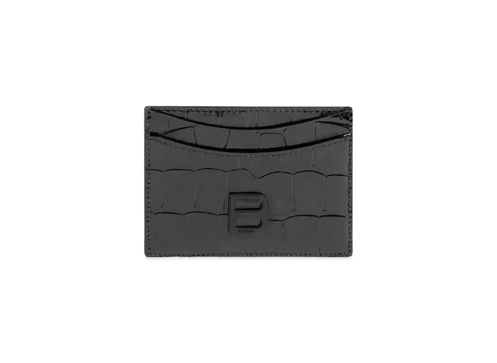 BALENCIAGA Hourglass Card Holder Shiny Crocodile Embossed Calfskin "Black"