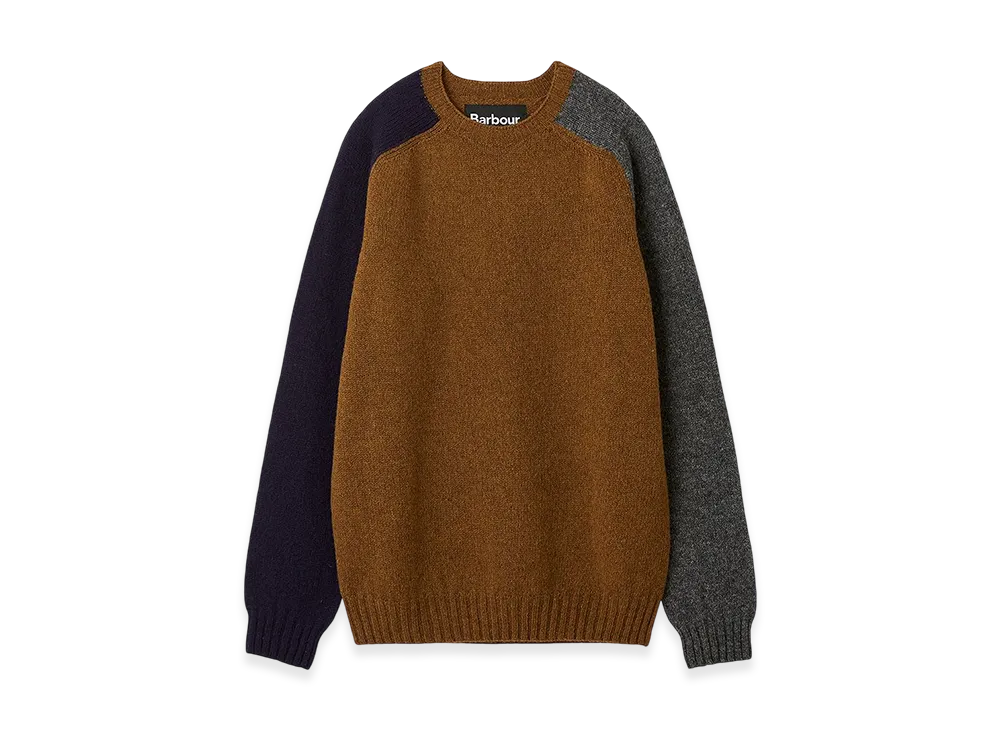Barbour Color Block Crew Neck Shetland Knit "Brown"